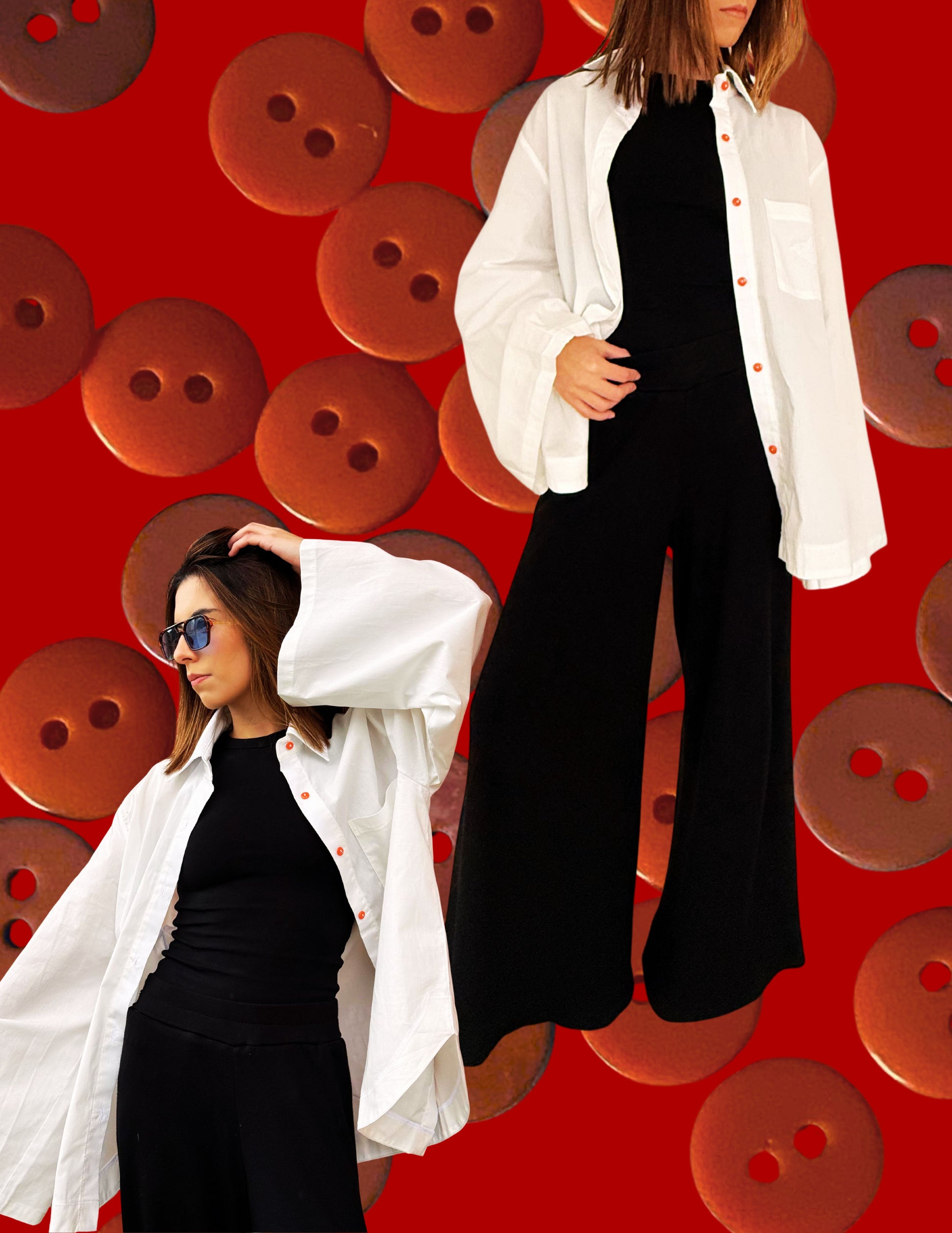 Su diseño minimalista y clásico se eleva con detalles distintivos: botones de color naranja y bordado tono a tono de FORMA.