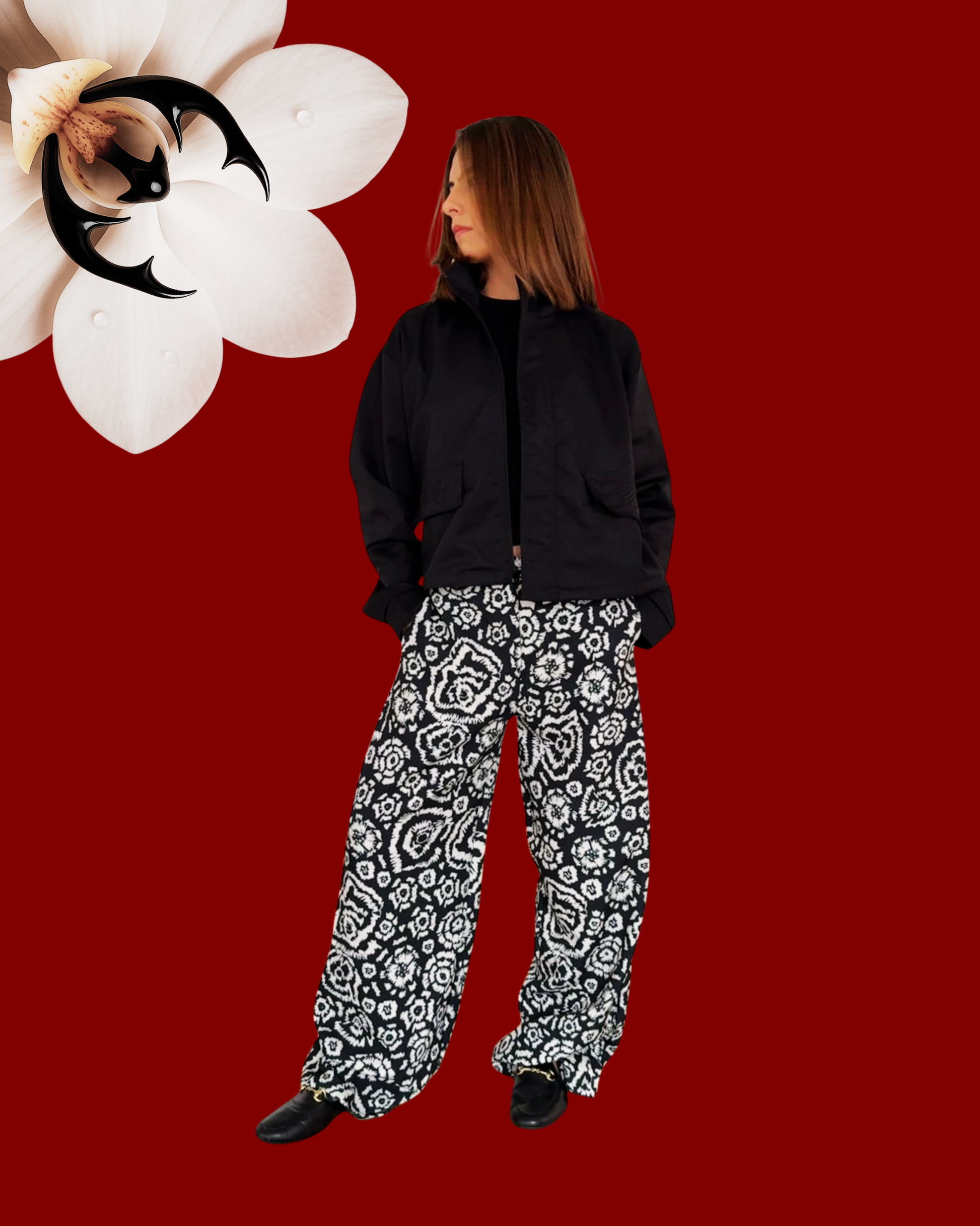 Pantalón de silueta recta y fluida, ideal para el uso diario. Confeccionado en una mezcla de 92% poliéster y 8% spandex, ofrece caída suave, una comodidad deli, elasticidad y facilidad de cuidado. Su estampado floral fue ilustrado a mano y no lo encontrarás en ningún otro lugar. Hecho en Colombia en un tiraje limitado, con tiempos de producción lentos y responsables: una prenda que dura pero que también dice algo diferente.